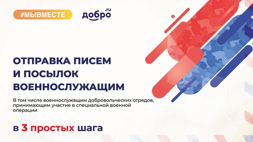 В рамках реализации проекта взаимопомощи #МЫВМЕСТЕАссоциация волонтерских центров совместно с Минобороны России подготовили методический материал по отправке писем и посылок военнослужащим на линию боевого соприкосновения через почтовые отделения Почты России.
